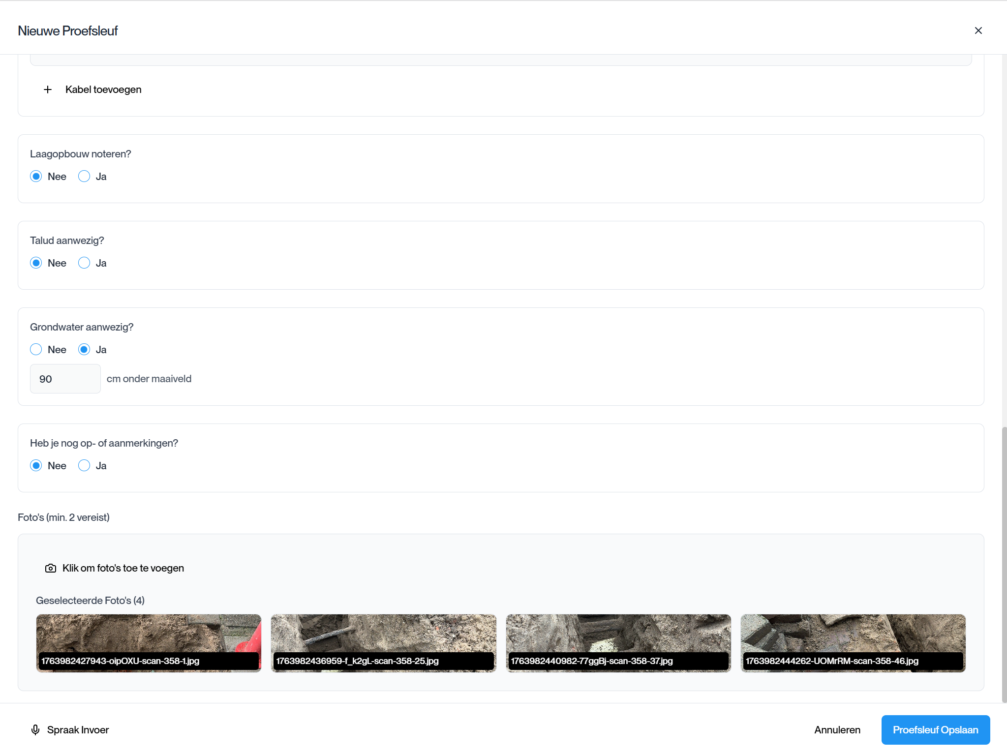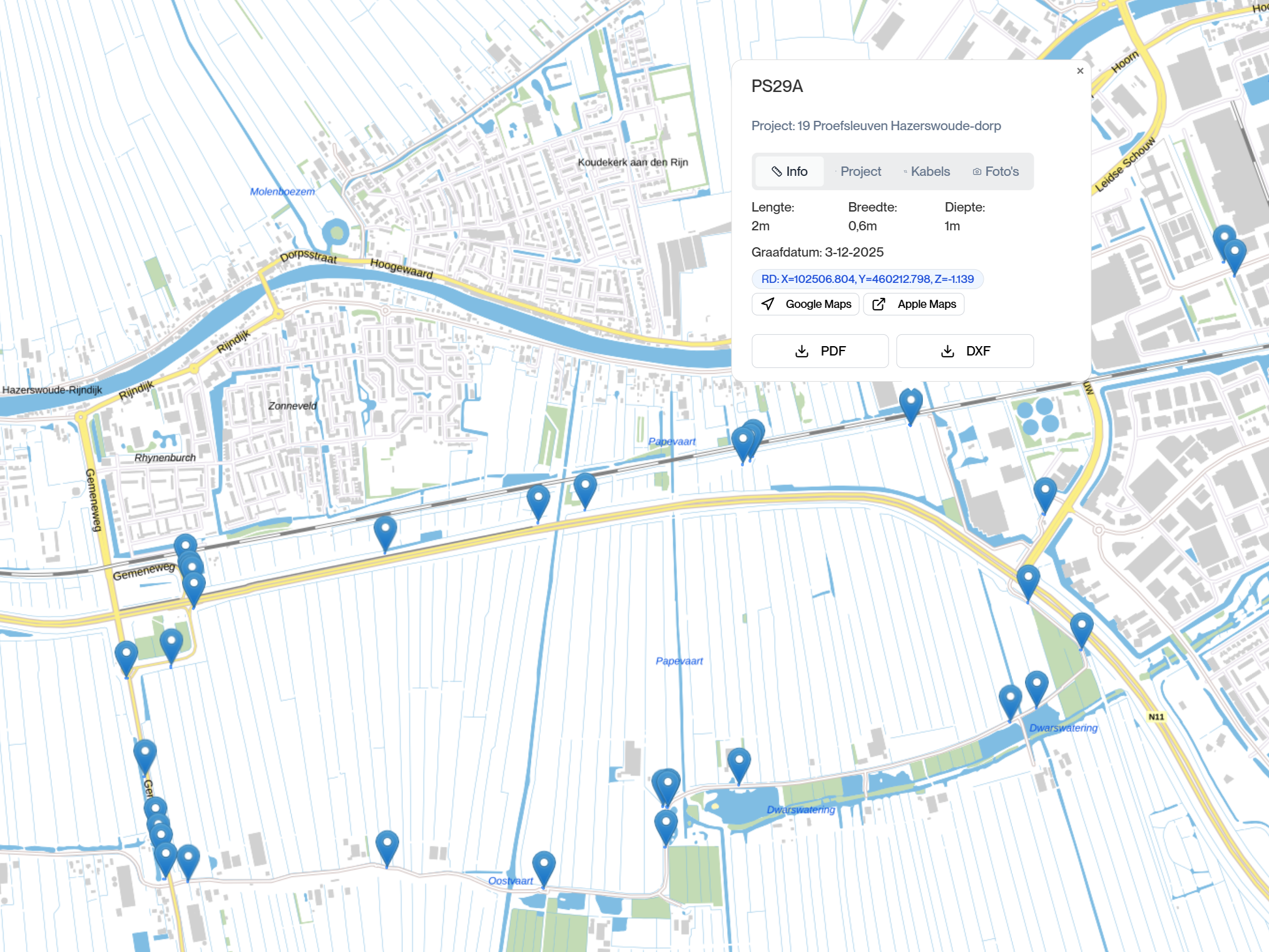 Alle proefsleuven worden opgeslagen en getoond op de kaart. Dit voorkomt onnodig graven en helpt netbeheerders bij het maken van weloverwogen beslissingen.